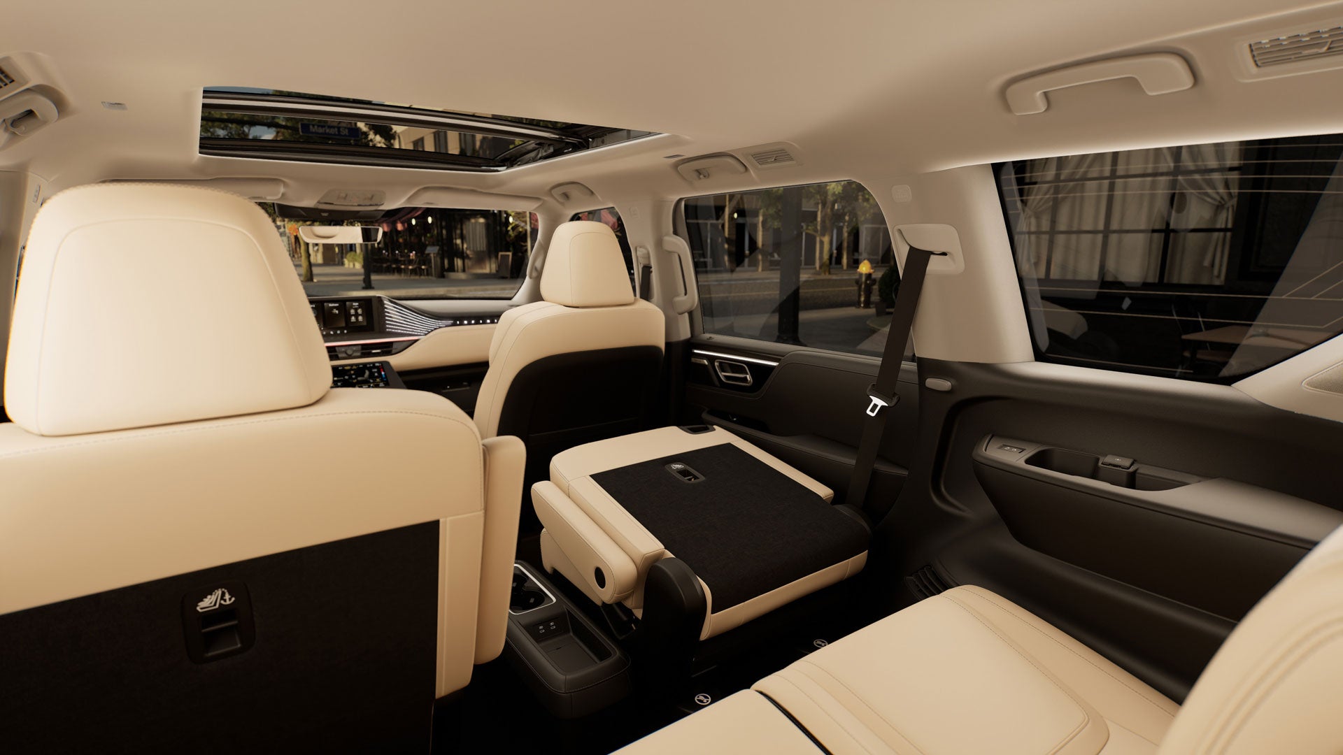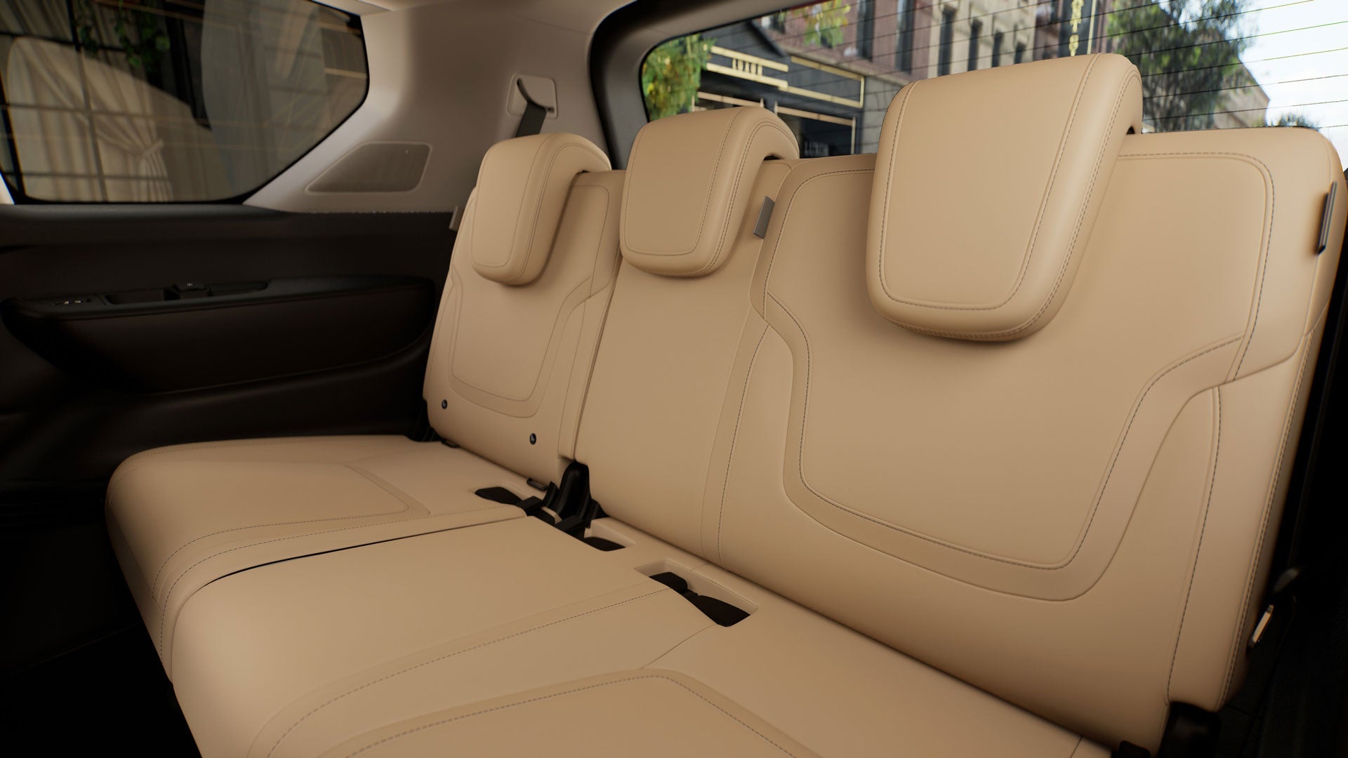 • Quilted semi-aniline leather-appointed seating across all three rows.
