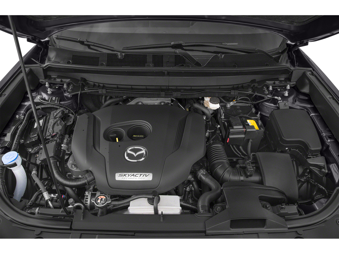 AWD, 12 Speakers, 3rd row seats: bench, 4-Wheel Disc Brakes, ABS brakes, Aha Internet Radio, Air Conditioning, Alloy wheels, AM/FM radio: SiriusXM, AppLink/Apple CarPlay and Android Auto, Auto High-beam Headlights, Auto-dimming Rear-View mirror, Automatic temperature control, Axle Ratio: 4.411, Brake assist, Bumpers: body-color, Carpeted Cargo Mat, Compass, Delay-off headlights, Driver door bin, Driver vanity mirror, Dual front impact airbags, Dual front side impact airbags, E911 Automatic Emergency Notification, Electronic Stability Control, Emergency communication system: MAZDA CONNECT, Four wheel independent suspension, Front anti-roll bar, Front Bucket Seats, Front Center Armrest, Front dual zone A/C, Front fog lights, Front reading lights, Fully automatic headlights, Garage door transmitter: HomeLink, Heads-Up Display, Heated door mirrors, Heated front seats, Heated rear seats, Heated steering wheel, Heated/Ventilated Front Bucket Seats, Illuminated entry, Infotainment System Voice Command, Leather Shift Knob, Leather steering wheel, Leather-Trimmed Seats, Low tire pressure warning, Mazda Navigation System, Memory seat, Navigation System, Occupant sensing airbag, Outside temperature display, Overhead airbag, Overhead console, Pandora Internet Radio, Panic alarm, Passenger door bin, Passenger vanity mirror, Power door mirrors, Power driver seat, Power Liftgate, Power moonroof, Power passenger seat, Power steering, Power windows, Radio Broadcast Data System Program Information, Radio data system, Radio: AM/FM Sound System w/Bose Audio, Rain sensing wipers, Rear air conditioning, Rear anti-roll bar, Rear reading lights, Rear seat center armrest, Rear window defroster, Rear window wiper, Remote keyless entry, Roof rack: rails only, SiriusXM Satellite Radio, SMS Text Msg Audio Delivery & Reply, Speed control, Speed-sensing steering, Split folding rear seat, Spoiler, Steering wheel mounted audio controls, Stitcher Internet Radio, Tachometer, Telescoping steering wheel, Tilt steering wheel, Traction control, Trip computer, Turn signal indicator mirrors, Variably intermittent wipers, Ventilated front seats, and Wheels: 20 x 8.5J Aluminum Alloy.