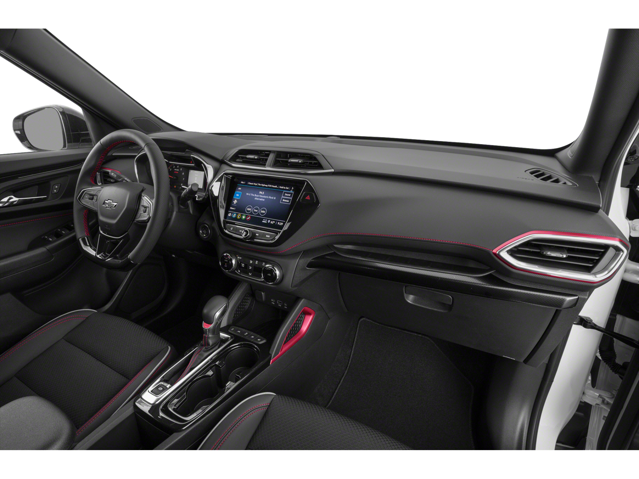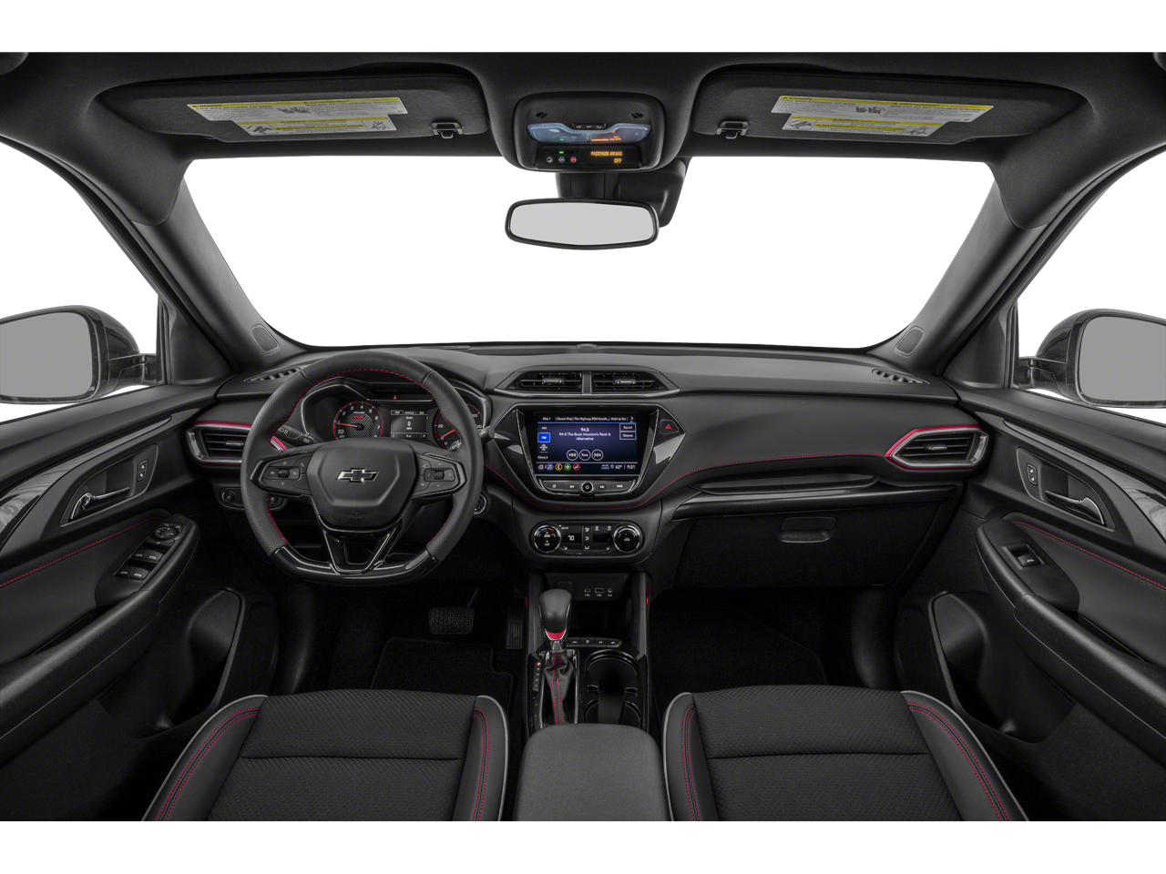 Convenience Package (1 Type-A & 1 Type-C USB Charging-Only Ports, 120-Volt Power Outlet, 8 Diagonal Color Touchscreen Display, Cabin Humidity Sensor, Driver & Front Passenger Illuminated Vanity Mirrors, Inside Rear-View Auto-Dimming Mirror, Single-Zone Auto Climate Control Air Conditioning, and SiriusXM Radio), Driver Confidence Package (Lane Change Alert w/Side Blind Zone Alert, Rear Cross Traffic Alert, and Rear Park Assist), Preferred Equipment Group 1RS, 2-Way Power Driver Lumbar Seat Adjuster, 3.17 Axle Ratio, 4-Way Manual Front Passenger Seat Adjuster, 4-Wheel Disc Brakes, 6 Speakers, 6-Speaker Audio System Feature w/Amplifier, 8-Way Power Driver Seat Adjuster, ABS brakes, Air Conditioning, Alloy wheels, AM/FM radio, Apple CarPlay/Android Auto, Auto High-beam Headlights, Brake assist, Bumpers: body-color, Cloth w/Leatherette Seat Trim, Compass, Delay-off headlights, Driver door bin, Driver vanity mirror, Dual front impact airbags, Dual front side impact airbags, Electronic Stability Control, Emergency communication system: OnStar and Chevrolet connected services capable, Exterior Parking Camera Rear, Flat-Folding Front Passenger Seatback, Front & Rear All-Weather Floor Liners (LPO), Front anti-roll bar, Front Bucket Seats, Front Center Armrest, Front fog lights, Front License Plate Bracket, Front reading lights, Front wheel independent suspension, Fully automatic headlights, Heated door mirrors, Heated Driver & Front Passenger Seats, Heated front seats, Illuminated entry, Knee airbag, Leather Shift Knob, Leather steering wheel, Low tire pressure warning, Mosaic Black Metallic Two-Tone Roof, Occupant sensing airbag, Overhead airbag, Overhead console, Panic alarm, Passenger door bin, Passenger vanity mirror, Power door mirrors, Power driver seat, Power steering, Power windows, Radio data system, Radio: Chevrolet Infotainment 3 System, Rear seat center armrest, Rear side impact airbag, Rear window defroster, Rear window wiper, Remote keyless entry, Ride & Handling Suspension, Roof rack: rails only, Security system, Speed control, Split folding rear seat, Spoiler, Steering wheel mounted audio controls, Tachometer, Telescoping steering wheel, Tilt steering wheel, Traction control, Trip computer, Variably intermittent wipers, Wheels: 18 High Gloss Black Machined Aluminum, and Wireless Apple CarPlay/Android Auto.