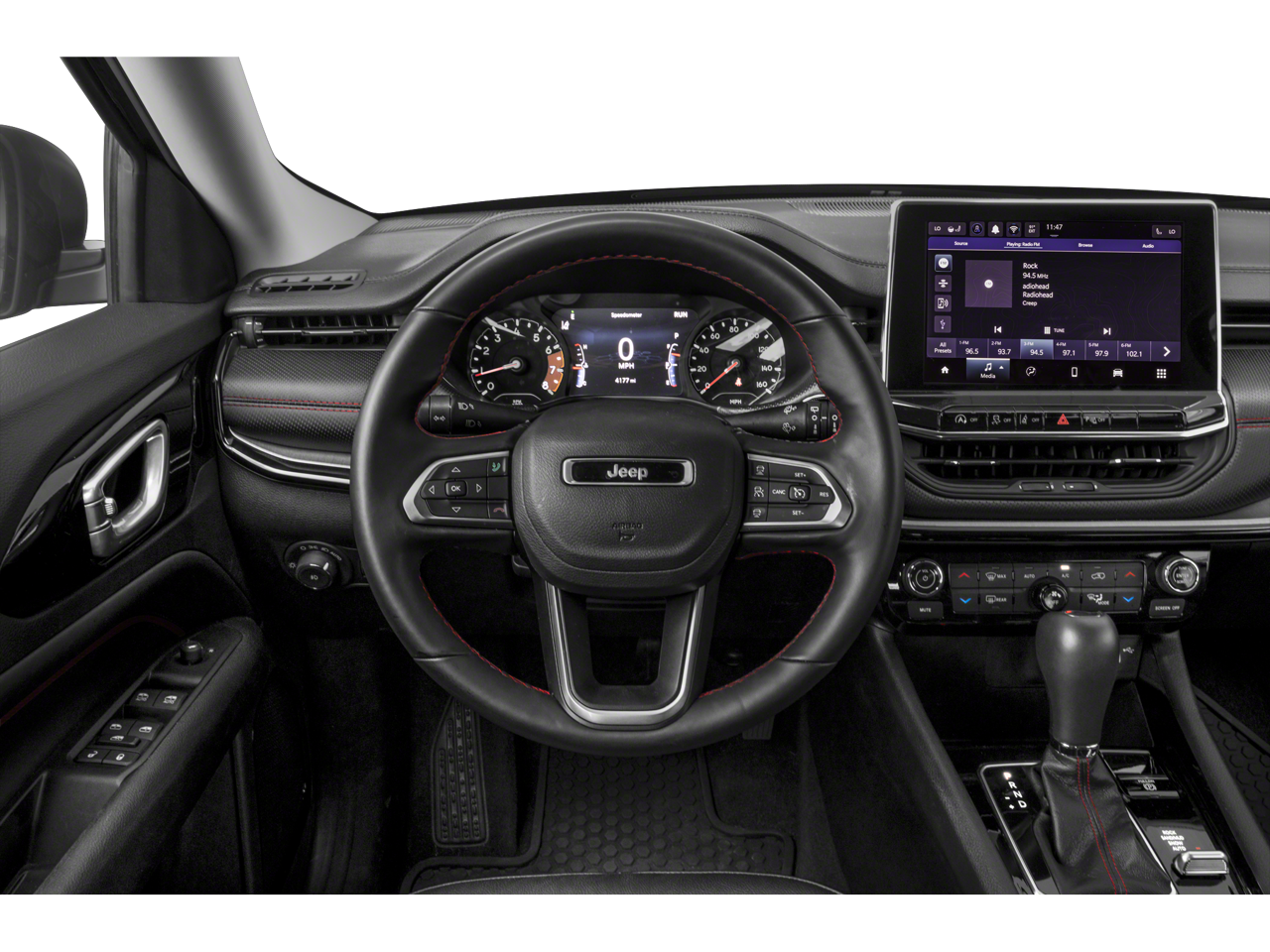 Quick Order Package 2GE, Trailhawk Convenience Group (115V Auxiliary Power Outlet, 2nd Row USB Type A/C Charge Only, Heated Front Seats, Leather Wrapped Steering Wheel, Power 2-Way Driver Lumbar Adjust, Power Adjust 8-Way Driver Seat, Remote Start System, Reversible Carpet/Vinyl Cargo Mat, Vehicle Information Center, and Windshield Wiper De-Icer), FCA US LLC Certified Pre-Owned Certified, 4WD, 10.1 Touchscreen Display, 4-Wheel Disc Brakes, 4.334 Axle Ratio, 6 Speakers, ABS brakes, Air Conditioning, Alloy wheels, AM/FM radio: SiriusXM, Anti-whiplash front head restraints, Auto High-beam Headlights, Auto-dimming Rear-View mirror, Automatic temperature control, Brake assist, Bumpers: body-color, Compass, Delay-off headlights, Disassociated Touchscreen Display, Driver door bin, Driver vanity mirror, Dual front impact airbags, Dual front side impact airbags, Electronic Stability Control, Emergency communication system: SiriusXM Guardian, Four wheel independent suspension, Front anti-roll bar, Front Bucket Seats, Front Center Armrest w/Storage, Front dual zone A/C, Front fog lights, Front License Plate Bracket, Front reading lights, Fully automatic headlights, Global Telematics Box Module (TBM), Heated door mirrors, Illuminated entry, Knee airbag, Leather Shift Knob, Low tire pressure warning, Occupant sensing airbag, Outside temperature display, Overhead airbag, Overhead console, Panic alarm, ParkView Rear Back-Up Camera, Passenger door bin, Passenger vanity mirror, Power door mirrors, Power steering, Power windows, Premium Cloth/Leather Trim Bucket Seats, Radio: Uconnect 5 w/10.1 Display, Rain sensing wipers, Rear anti-roll bar, Rear seat center armrest, Rear window defroster, Rear window wiper, Remote keyless entry, Roof rack: rails only, Security system, Speed control, Split folding rear seat, Spoiler, Steering wheel mounted audio controls, Tachometer, Telescoping steering wheel, Tilt steering wheel, Traction control, Trip computer, Turn signal indicator mirrors, Variably intermittent wipers, and Wheels: 17 x 6.5 Painted Diamond Cut Aluminum.