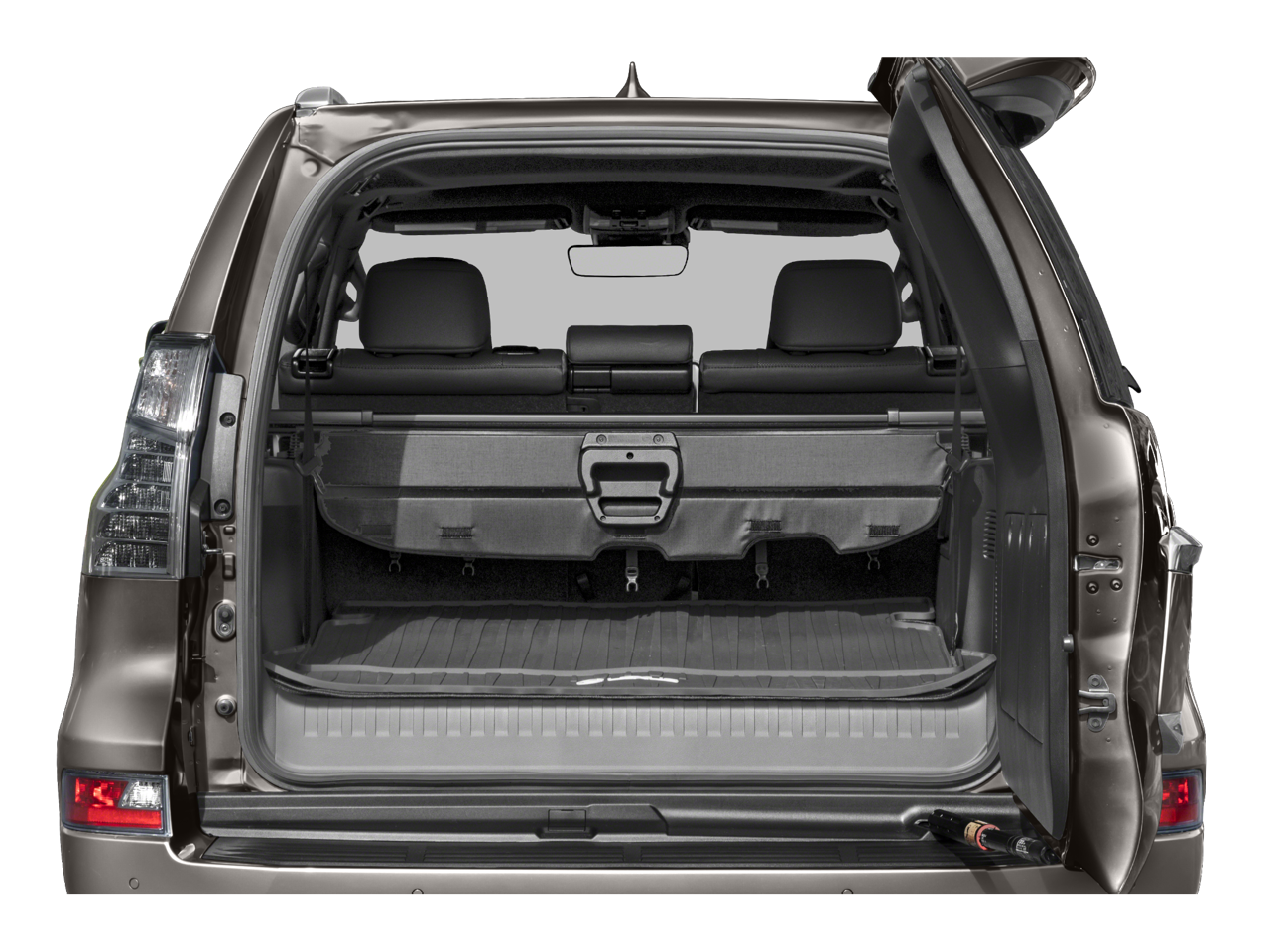 Premium Package (Dual Front & Rear Auto Air Conditioner, Front & Rear Heated Seats, LED Front Fog & Driving Lamp, NuLuxe Seat Trim (EA), Ventilated Front Seats, Windshield De-Icer, and Windshield Wiper Control w/Rain Sensor), 18 x 7.5J Aluminum Alloy Wheels, 3.909 Axle Ratio, 3rd row seats: split-bench, 4-Wheel Disc Brakes, 9 Speakers, ABS brakes, Air Conditioning, All Weather Floor Liners w/Cargo Mat, Alloy Wheel Locks, Alloy wheels, AM/FM radio: SiriusXM, Anti-whiplash front head restraints, Apple CarPlay/Android Auto, Auto High-beam Headlights, Auto tilt-away steering wheel, Auto-dimming Rear-View mirror, Automatic temperature control, Brake assist, Bumpers: body-color, Cargo Net, Cargo-Area Tonneau Cover, CD player, Compass, Delay-off headlights, Driver door bin, Driver vanity mirror, Driver's Seat Mounted Armrest, Dual front impact airbags, Dual front side impact airbags, Electronic Stability Control, Emergency communication system: Safety Connect (3-year trial), Exterior Parking Camera Rear, Front anti-roll bar, Front Bucket Seats, Front dual zone A/C, Front reading lights, Front wheel independent suspension, Fully automatic headlights, Garage door transmitter: HomeLink, Headlamp Washers, Heated door mirrors, Heated Wood & Leather Steering Wheel, Illuminated entry, Illuminated running boards, Key Gloves, Knee airbag, Leather Shift Knob, Leather steering wheel, Low tire pressure warning, Memory seat, Navigation system: Lexus Enform Dynamic Navigation, NuLuxe Seat Trim, Occupant sensing airbag, Outside temperature display, Overhead airbag, Overhead console, Panic alarm, Passenger door bin, Passenger seat mounted armrest, Passenger vanity mirror, Power door mirrors, Power driver seat, Power moonroof, Power passenger seat, Power steering, Power windows, Quick Charge Cables-Mobile, Radio data system, Radio: Lexus Multimedia System w/Navigation, Rear anti-roll bar, Rear reading lights, Rear seat center armrest, Rear side impact airbag, Rear window defroster, Rear window wiper, Remote keyless entry, Roof Rack Cross Bars, Roof rack: rails only, Security system, Speed control, Speed-sensing steering, Split folding rear seat, Spoiler, Steering wheel memory, Steering wheel mounted audio controls, Tachometer, Telescoping steering wheel, Tilt steering wheel, Traction control, Trip computer, Turn signal indicator mirrors, Variably intermittent wipers, and Wheels: 18 x 7.5J Dark Gray Metallic Alum Alloy.