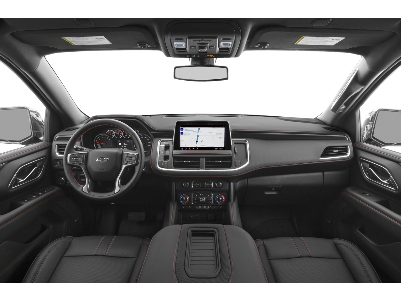 Driver Alert Package (Lane Change Alert w/Side Blind Zone Alert and Rear Cross Traffic Alert), License Plate Front Mounting Package, Luxury Package (2nd Row Pwr Release 60/40 Split-Folding Bench Seat, 3rd Row 60/40 Power-Folding Split-Bench Seat, Adaptive Cruise Control, Enhanced Automatic Emergency Braking, HD Surround Vision, Heated 2nd Row Outboard Seats, Heated Steering Wheel, Memory Settings, Outside Heated Power-Adjustable Mirrors, Power Tilt & Telescopic Steering Column, and Rear Pedestrian Alert), Preferred Equipment Group 1SP (1st & 2nd Row Color-Keyed Carpeted Floor Mats, Auto-Dimming Inside Rear-View Mirror, Bose 9-Speaker Stereo Audio System Feature, Bright Front & Rear Door Sill Plates, Color-Keyed Carpeting Floor Covering, Driver & Front Outboard Passenger Airbags, Enhanced Driver Information Center, Floor Console w/Storage Area, Hands-Free Rear Power Programmable Liftgate, LED Daytime Running Lamps, Memory Settings for Driver, Remote Start, SiriusXM w/360L, Universal Home Remote, Wireless Charging, and Wrapped Steering Wheel), 4WD, Jet Black/Victory Red Leather, 10-Way Power Driver & Passenger Seat Adjusters, 2 USB Data Ports in Center Console Delete, 3.23 Rear Axle Ratio, 3rd row seats: split-bench, 4-Wheel Disc Brakes, 9 Speakers, ABS brakes, Air Conditioning, Alloy wheels, AM/FM radio: SiriusXM with 360L, Apple CarPlay/Android Auto, Auto High-beam Headlights, Auto-dimming Rear-View mirror, Automatic temperature control, Brake assist, Bumpers: body-color, Compass, Delay-off headlights, Driver door bin, Driver vanity mirror, Dual front impact airbags, Dual front side impact airbags, Dual-Pane Power Panoramic Sunroof, Electronic Stability Control, Emergency communication system: OnStar and Chevrolet connected services capable, Floor Console, Four wheel independent suspension, Front anti-roll bar, Front Bucket Seats, Front Center Armrest, Front dual zone A/C, Front High-Back Reclining Bucket Seats, Front reading lights, Fully automatic headlights, Garage door transmitter, Heated door mirrors, Heated Driver & Front Passenger Seats, Heated front seats, Illuminated entry, Infotainment Display, Low tire pressure warning, Memory seat, Navigation System, Occupant sensing airbag, Outside temperature display, Overhead airbag, Overhead console, Panic alarm, Passenger door bin, Passenger vanity mirror, Perforated Leather Seat Trim, Power door mirrors, Power driver seat, Power Liftgate, Power passenger seat, Power Release 2nd Row Bucket Seats, Power steering, Power windows, Premium audio system: Chevrolet Infotainment 3 Premium, Premium Smooth Ride Suspension, Radio: Chevrolet Infotainment 3 Premium System, Rain sensing wipers, Rear air conditioning, Rear anti-roll bar, Rear reading lights, Rear seat center armrest, Rear window defroster, Rear window wiper, Remote keyless entry, Roof rack: xxxxxx, Security system, Set of 4 Wheel Locks (LPO), Speed control, Speed-sensing steering, Split folding rear seat, Spoiler, Steering wheel mounted audio controls, Tachometer, Telescoping steering wheel, Tilt steering wheel, Traction control, Trip computer, Variably intermittent wipers, Voltmeter, and Wheels: 22 x 9 Bright Machined.