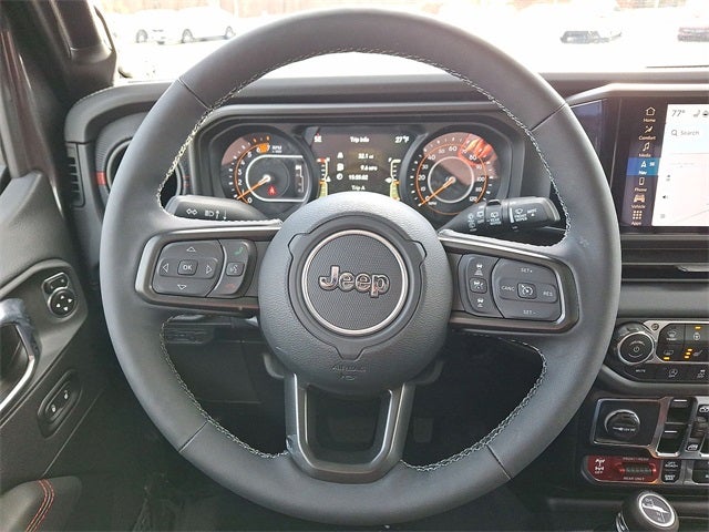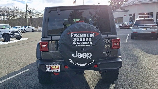 Convenience Group (Heated Front Seats, Heated Steering Wheel, and Universal Garage Door Opener), Quick Order Package 24R Rubicon, Safety Group (Auto High Beam Headlamp Control, Blind Spot & Cross Path Detection, and ParkSense Rear Park Assist System), Technology Group (12.3 Touchscreen Display, 4G LTE Wi-Fi Hot Spot, Apple CarPlay, Auto-Dimming Rear-View Mirror, Connected Travel & Traffic Services, Connectivity - US/Canada, Google Android Auto, GPS Navigation, HD Radio, Integrated Off-Road Camera, Integrated Voice Command w/Bluetooth®, Radio: Uconnect 5 Nav w/12.3 Display, SiriusXM Radio Service, and SiriusXM w/360L), FCA US LLC Certified Pre-Owned Certified, 4-Wheel Disc Brakes, 4.10 Rear Axle Ratio, 8 Speakers, 97 MPH Vehicle Max Speed Calibration, ABS brakes, Air Conditioning, Alloy wheels, Alpine Premium Audio System, AM/FM radio: SiriusXM, Apple CarPlay/Android Auto, Automatic temperature control, Aux Battery, Auxiliary Switches, Black 3-Piece Hard Top, Brake assist, Class II Receiver Hitch, Cloth Low-Back Bucket Seats, Compass, Delay-off headlights, Driver door bin, Driver vanity mirror, Dual front impact airbags, Dual front side impact airbags, Electronic Stability Control, Emergency communication system: Jeep Connect, Freedom Panel Storage Bag, Front anti-roll bar, Front Bucket Seats, Front Center Armrest w/Storage, Front dual zone A/C, Front fog lights, Front reading lights, Fully automatic headlights, Heated door mirrors, Illuminated entry, Integrated roll-over protection, Low tire pressure warning, Non-Lock Fuel Cap w/o Discriminator, Occupant sensing airbag, Outside temperature display, Overhead airbag, Panic alarm, ParkView Rear Back-Up Camera, Passenger door bin, Passenger vanity mirror, Performance Suspension, Power door mirrors, Power steering, Power windows, Radio data system, Radio: Uconnect 5 w/12.3 Display, Rear anti-roll bar, Rear reading lights, Rear Window Defroster, Rear Window Wiper/Washer, Remote keyless entry, Security system, Speed control, Split folding rear seat, Steering wheel mounted audio controls, Stop-Start Dual Battery System, Tachometer, Telescoping steering wheel, Tilt steering wheel, Traction control, Trip computer, Variably intermittent wipers, Voltmeter, and Wheels: 17 x 7.5 Machined/Painted Black.